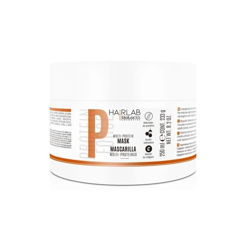 Мульти-Протеиновая маска Salerm Hair Lab Multi-Protein Mask обеспечивает глубокое восстановление и укрепление сухих, истонченных, поврежденных волос, интенсивно восполняя недостаток натурального кератина в волосах, придавая им дополнительный объем и здоровье.